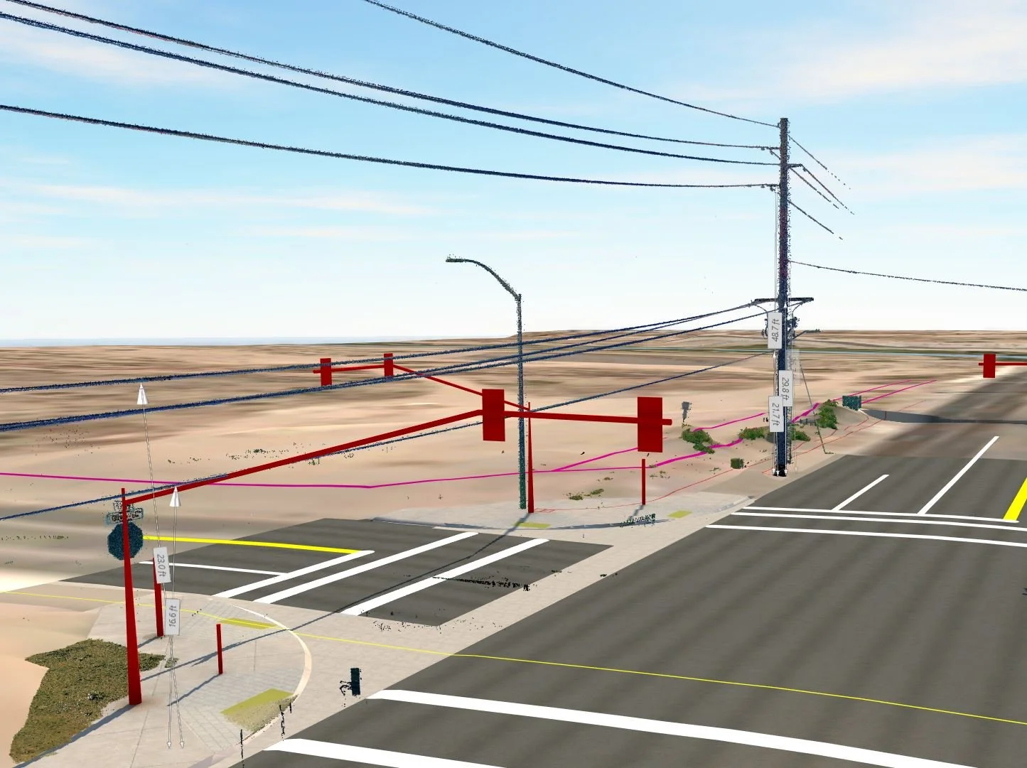 Y2K Engineering was tasked from our Peoria Traffic on-call to perform a safety analysis, access management analysis, and signal warrant analysis on the Olive Avenue corridor from 98th Lane to the Loop 101. Following the warrant analysis, Y2K was then tasked with advancing a traffic signal to final design at 98th Ln/99th Ave and Olive Avenue. Y2K Engineering obtained lidar survey and provided 3-D concepts of the new signal as extensive utility coordination was required with both APS and SRP since overhead power was found to conflict with the new signal mast arm. Y2K lead the entire signal design efforts including utility coordination, ADA ramp design, lighting analysis, and signing and marking design. Additionally, Y2K led efforts to design median modifications at 93rd & Olive to address access management and safety concerns adjacent to the Loop 101. This effort included extensive public involvement in the surrounding area to discuss taking away the left turn movements from the neighborhood to the north and business park to the south.
